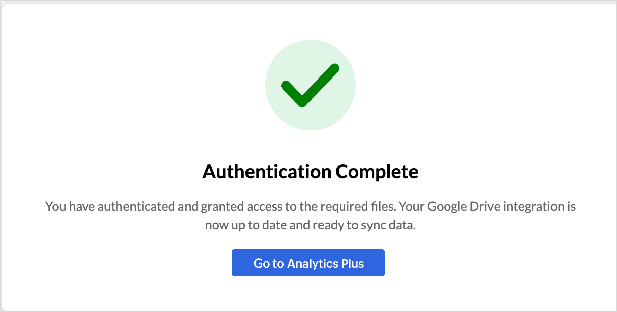 An Authentication Complete dialog will appear. Click Go to ManageEngine Analytics Plus to continue analyzing your data.