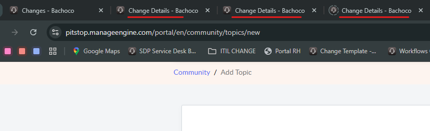 In this example I have 3 open changes but, unless I open each tab, there is no way of knowing wich tab belongs to wich change. Sometimes I have up to 10 open tabs with incidents, changes and requests and it becomes a problem to keep track of the tabs.