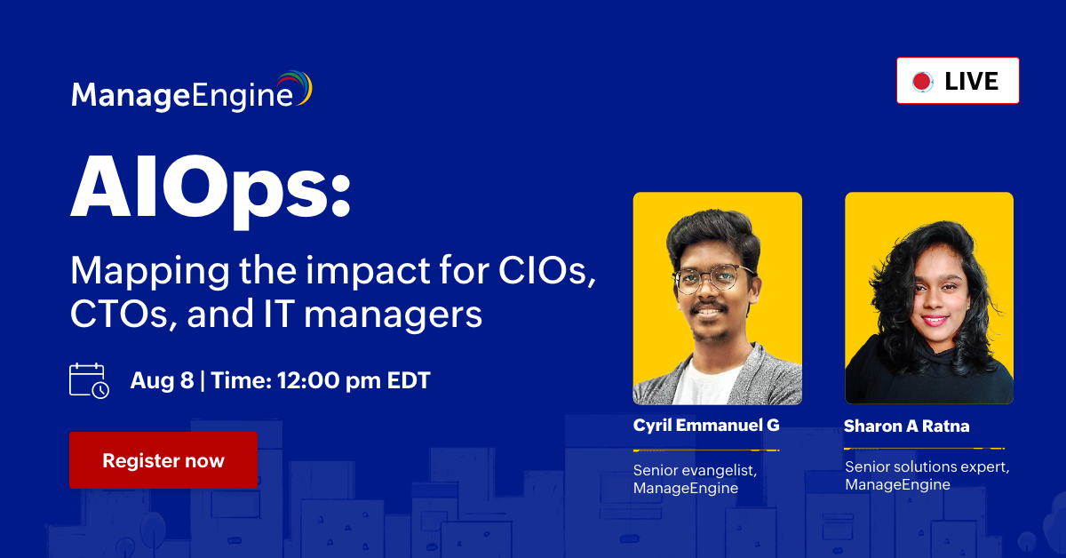 To help you in this process, the ManageEngine ITOM team is inviting you to our insightful, 30-minute LinkedIn Live on Mapping the impact of AIOps for CIOs, CTOs, and IT managers.