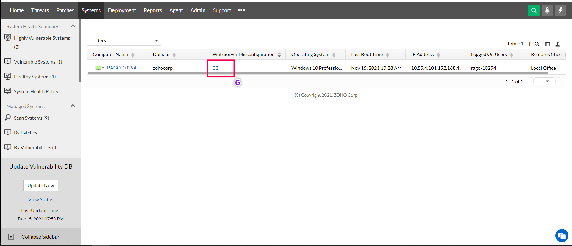 6) To view the exact web server installations on those systems that are affected by this vulnerability, click on the web server misconfiguration count available for each system.