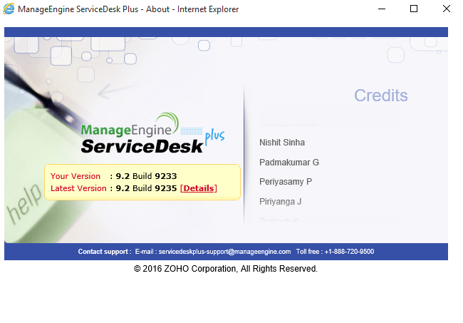 2) Servicedesk version information,