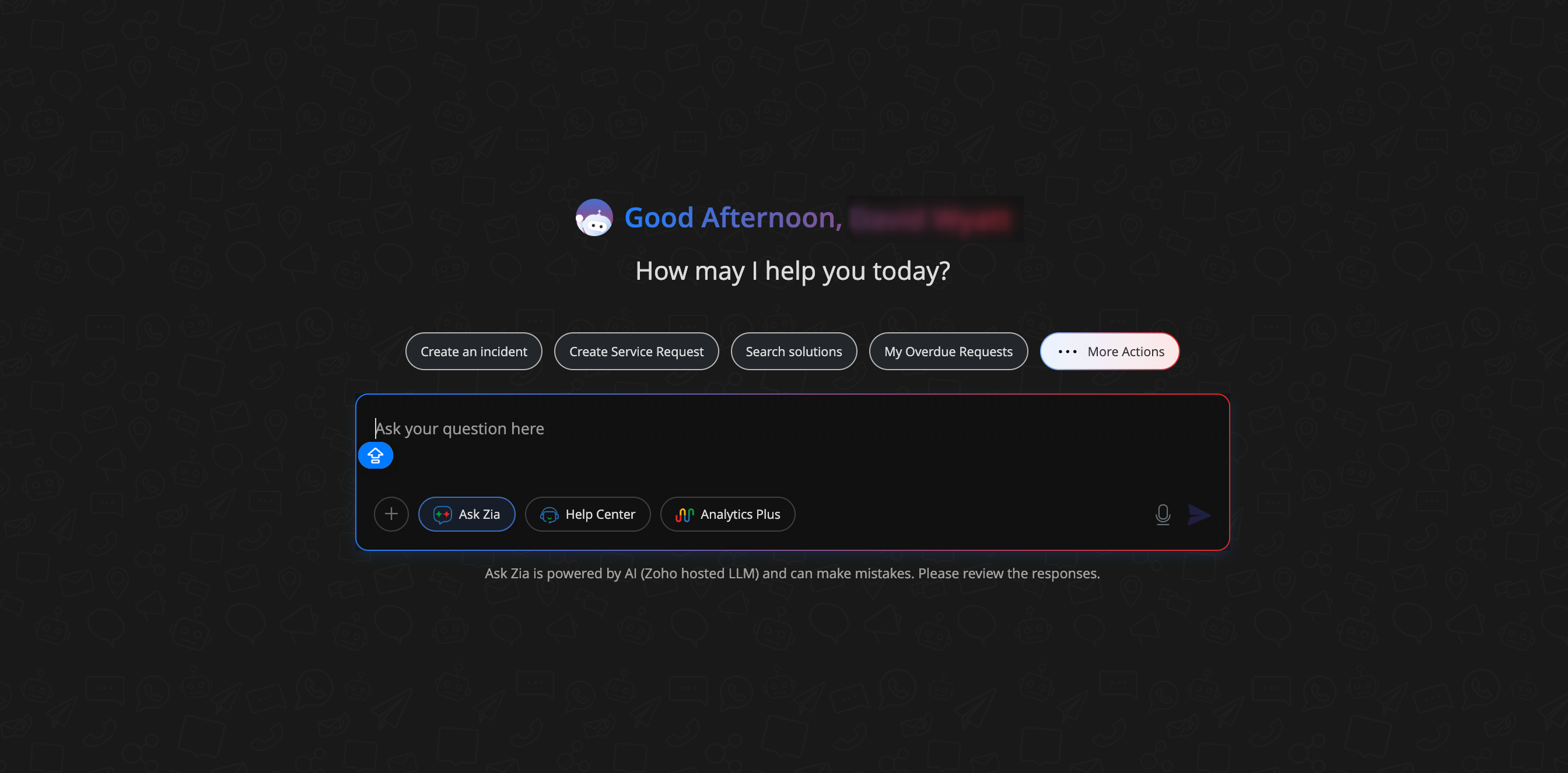 With the introduction of the gen AI features, and the Ask Zia module within the portal, it feels like its a missed opportunity for the Ask Zia front end to become the landing page for the requester portal.