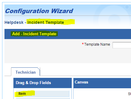 When I go to create a new Incident Template, it is showing an additional field called "Item" as following: