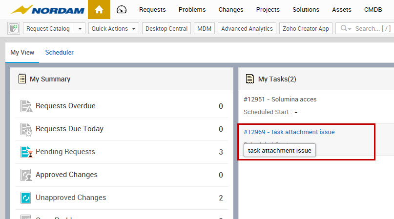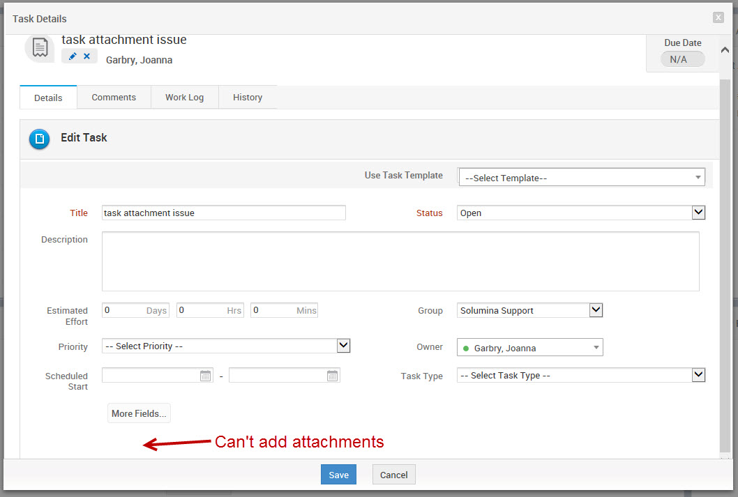 When I attempt to add attachments to a task when I've opened the task from the home page, there's no option.
