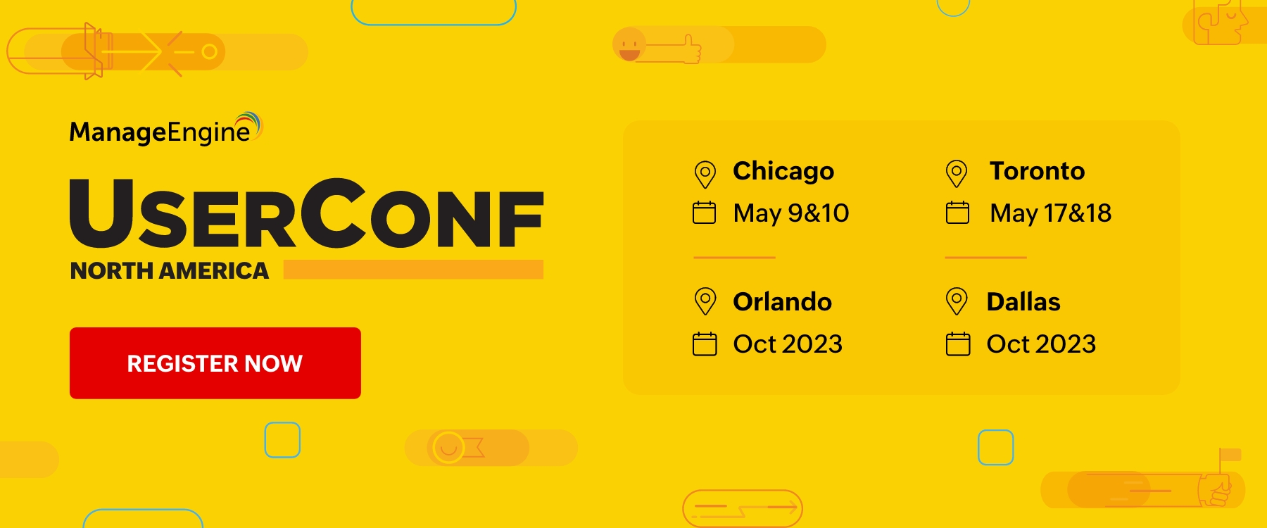 After a long wait of three years, the ManageEngine User Conference is back in North America, and we are super excited to meet our customers! The conference will take place in May in Chicago and Toronto, and in October in Dallas and Orlando.