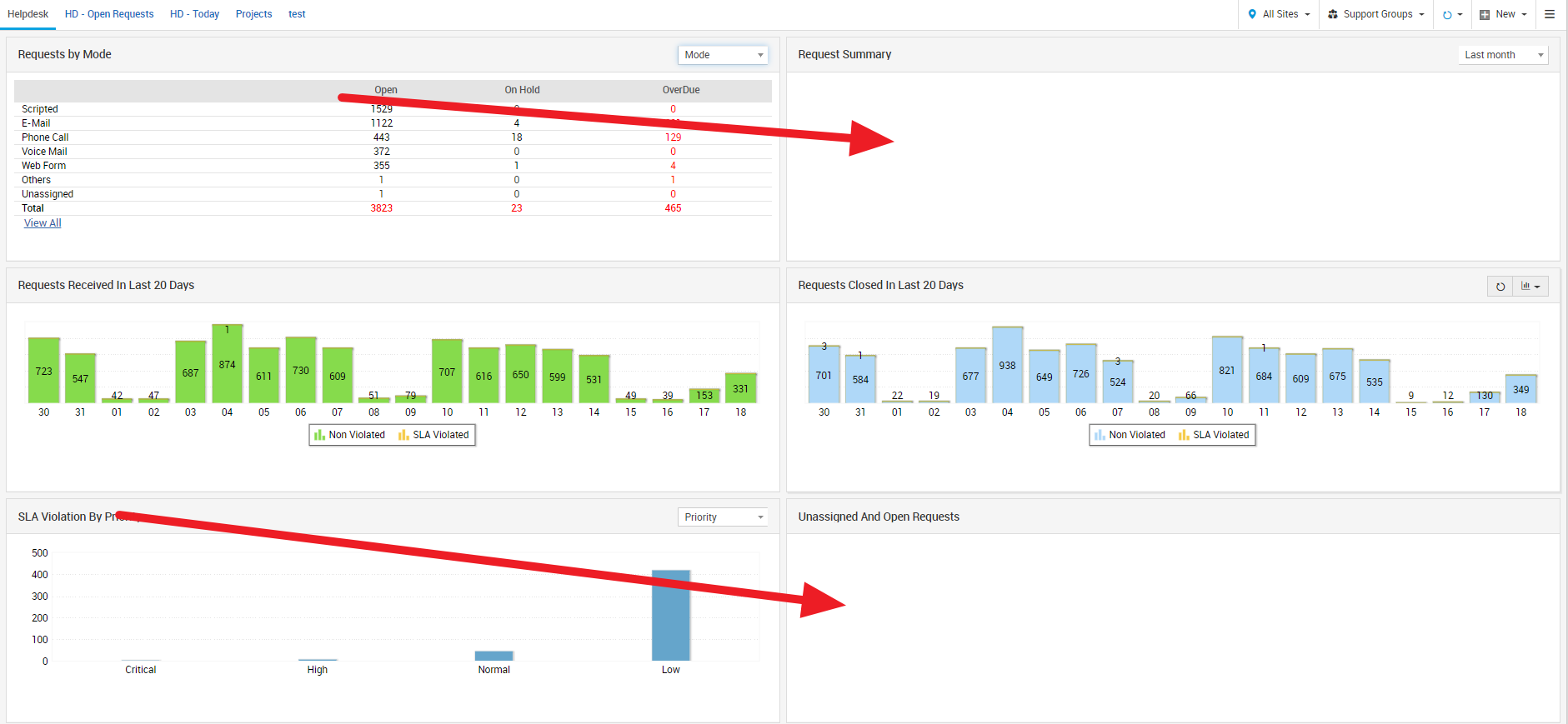 I've got a couple of the canned dashboard widgets that have stopped displaying information. Here is a screen shot: