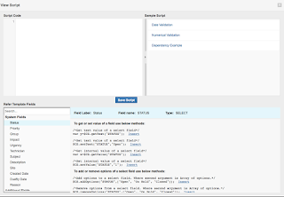 - In the script use the unique alias name or label you used to define the field (ServiceDesk Plus has it's own internal naming convention for these fields).