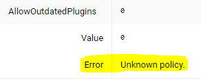 (policy has been deprecated since v88) and should probably be removed as a misconfiguration in MEDC/EP add-on. If enabled, loading chrome://policy/ in current versions of Chrome will show the following: