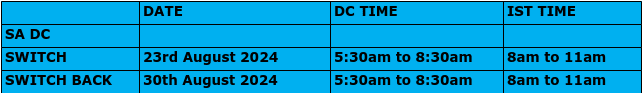 We have planned to conduct our yearly Disaster Recovery(DR) Drill for Zoho SA(Saudi Arabia) Service on 23rd August 2024 and 30th August 2024 to ensure our DR Readiness in SA Deployment. This will help us support our expanding server far more efficiently.