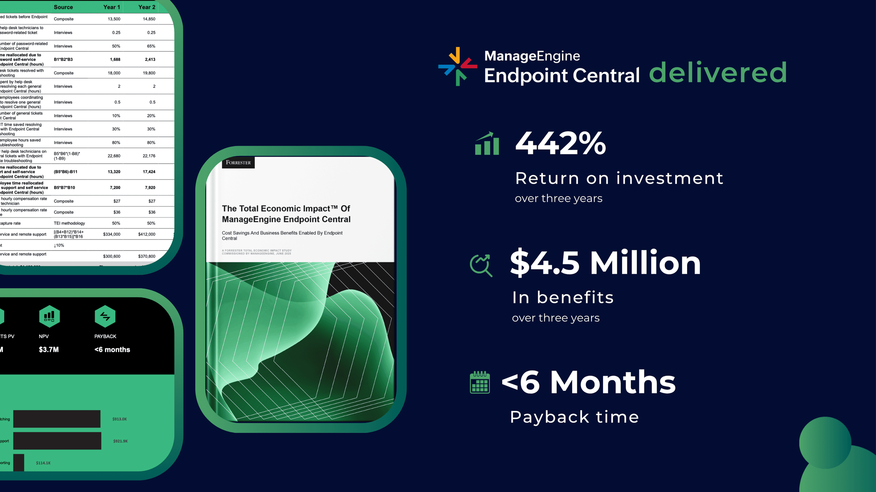 We are excited to share that we recently commissioned a Forrester Total Economic Impact™ (TEI) study to evaluate the potential benefits that organizations can achieve using Endpoint Central.