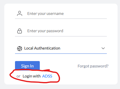 So at the moment when we get to the login page it's the standard username/password/domain with a link below to login via ADSS.