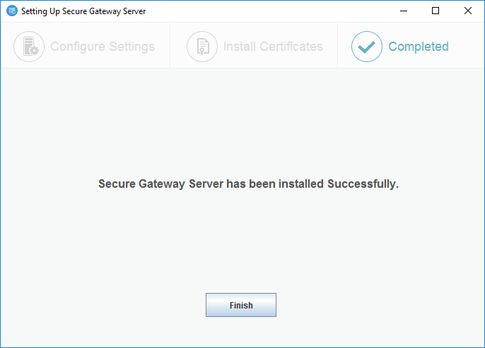 The installation of Secure Gateway Server has been successful and has started.