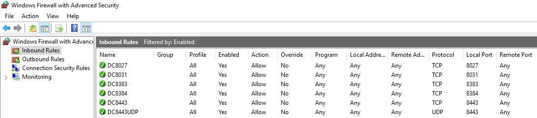 The firewall has opened the ports: 8383, 8443, 8027, 8031, 8384.