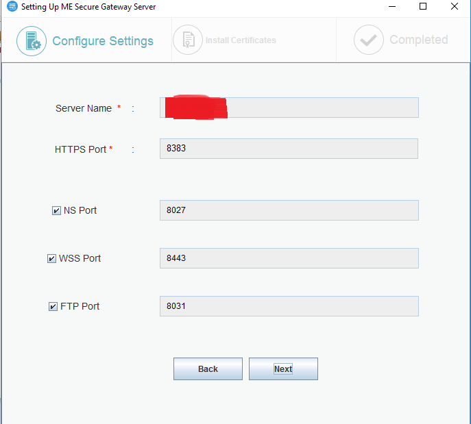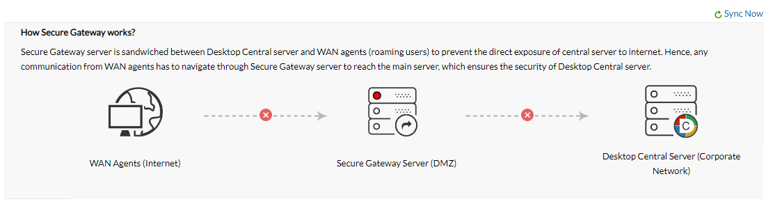 I have configured the Secure Gateway Server connection with the Desktop Central Server in Windows Server 2016.