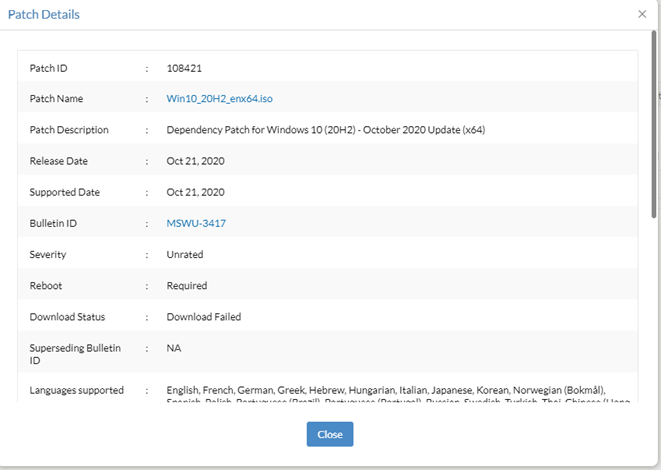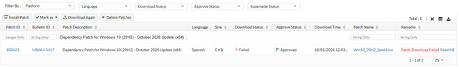 We are trying to update windows 10 to version 20H2, but we have problems with the package "Dependency Patch for Windows 10 (20H2) - October 2020 Update (x64)".