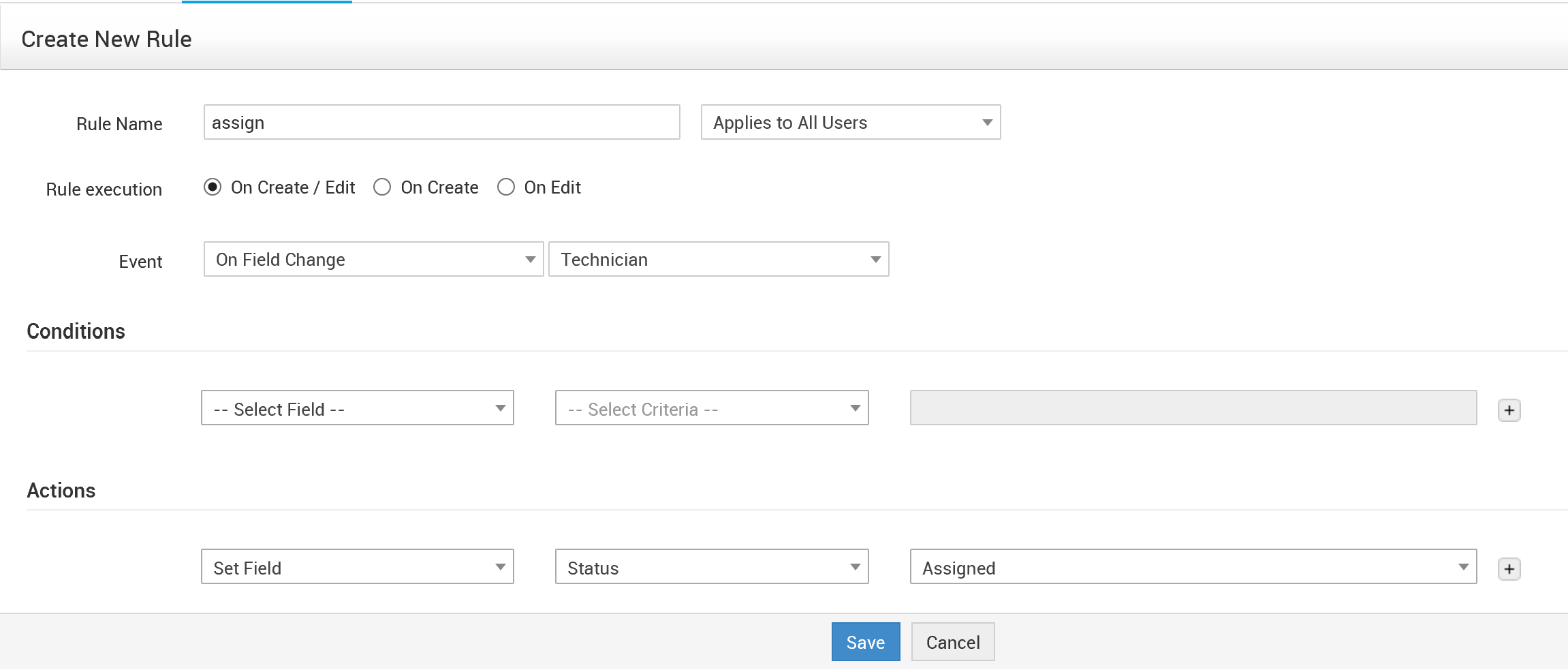 the rule only works if the field Technician is changed by using the "Assign" button.
