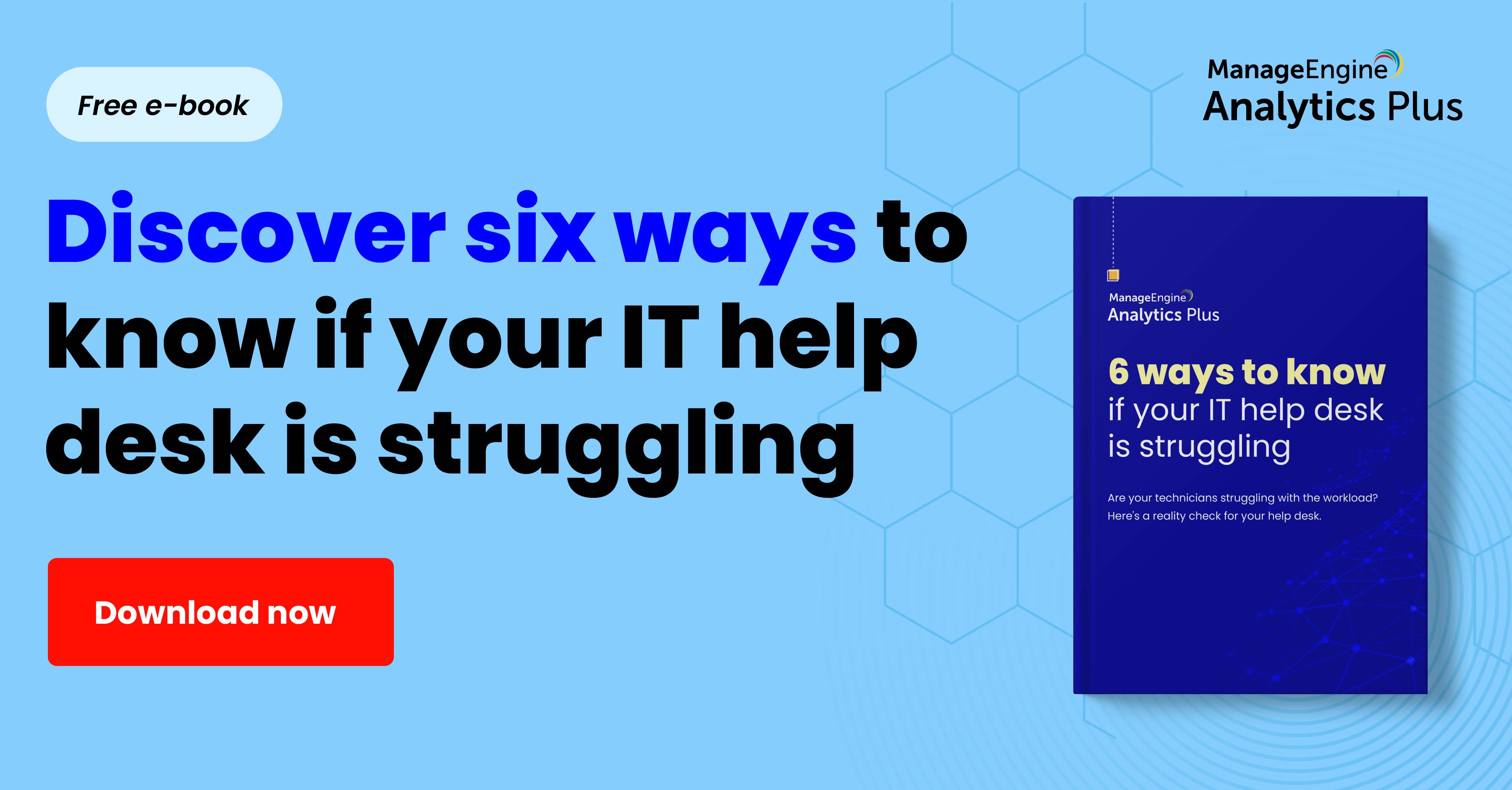 The IT help desk environment is incredibly challenging as it's the 'go-to' destination for end users when anything goes wrong. In short, IT help desk a high-pressure, high-impact, and high-stress environment where technicians are constantly fire-fighting and unable to voice out their challenges. Download our e-book to discover six ways analytics can help you get a realistic picture to know if your help desk is struggling.