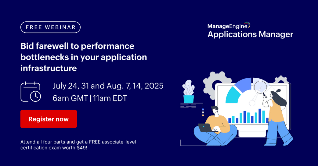 Our upcoming free training series breaks this down for you. We will explore how staying on top of your application and infrastructure performance can help you catch issues early, resolve root causes faster, and keep your systems running smoothly; without the firefighting. Learn how to bring everything under one dashboard, automate repetitive tasks, and get granular insights that aid you in managing your IT more effectively!