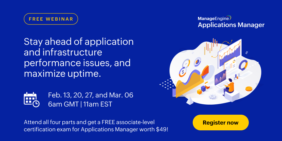 Attend our free training webinar series and discover how you can eliminate complex issues that affect your application and infrastructure performance by implementing effective strategies to monitor and safeguard your business environments while streamlining and automating your monitoring activities, all through a unified platform.