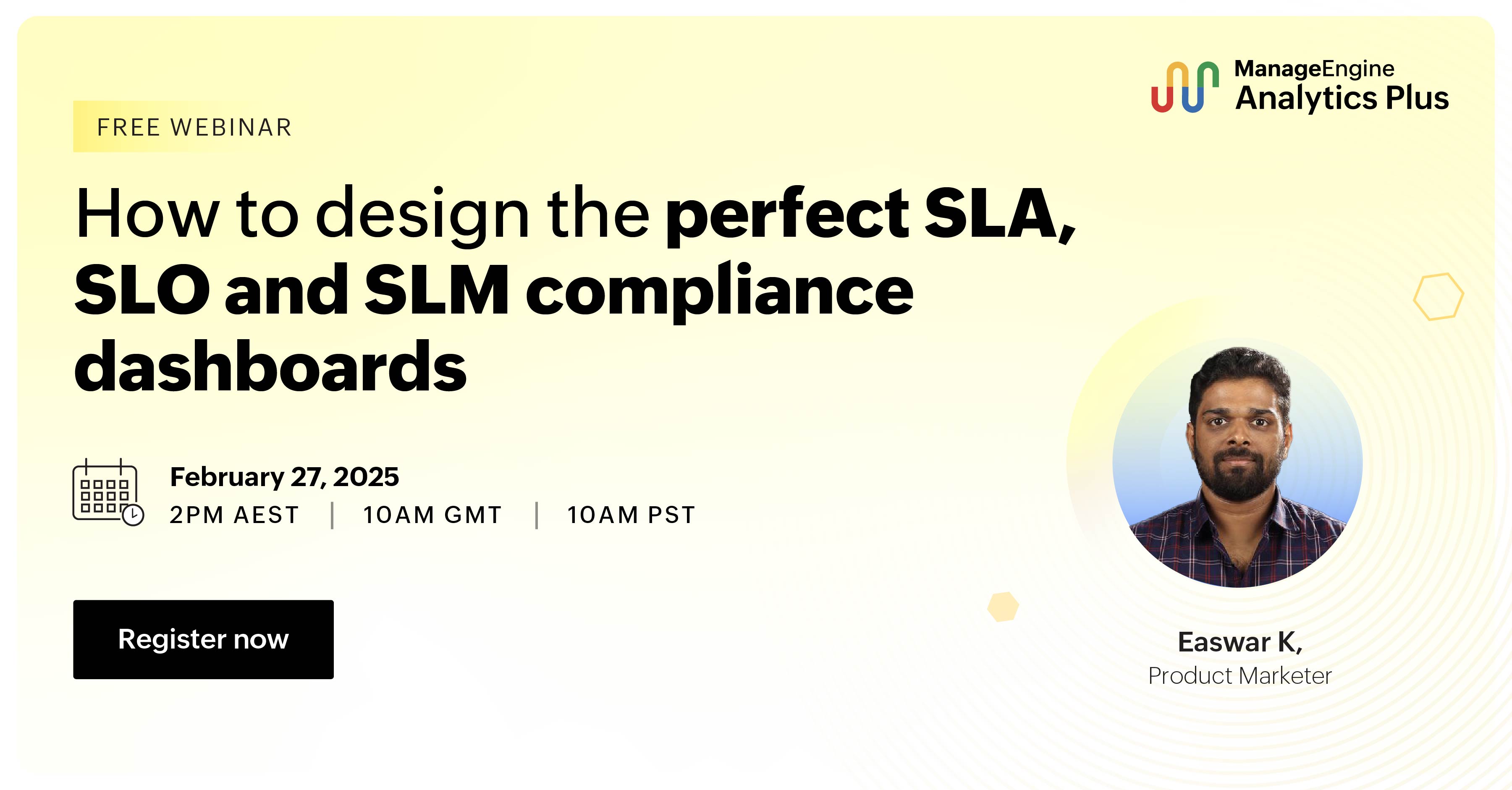 Join our upcoming webinar to discover how you can build comprehensive, AI-powered SLA, SLO, and SLM compliance dashboards that help you optimize uptime, slash resolution times, and align your IT operations with your organization's key business goals.