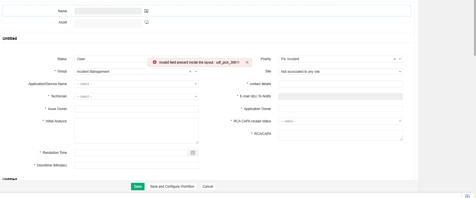 Get this error "Invalid field present inside the layout : udf_pick_30011"
