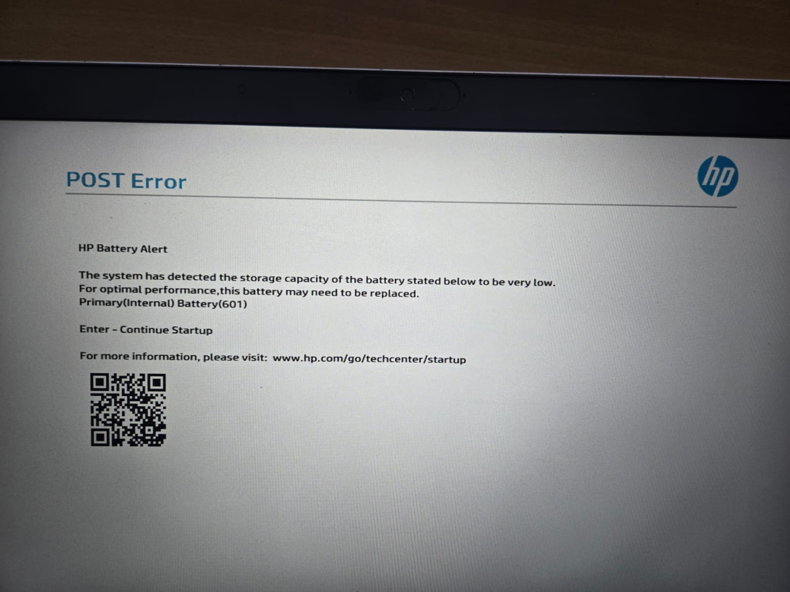 On startup, my HP laptop shows a POST Error ‘Primary Internal Battery (601)’ warning the battery capacity is very low. Does this require a battery replacement, or is there another fix?