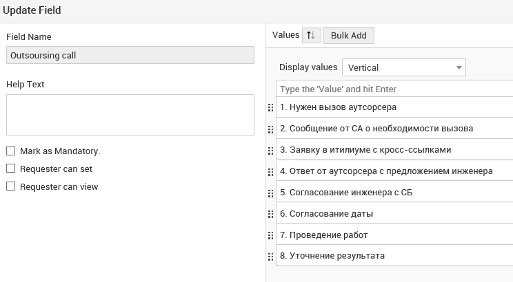 In the request, enter to inline edit mode by clicking on fields. And now, values sorting order is different from saved order.