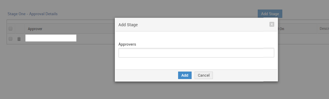 When adding the first stage, the form is correct, there is a topic and description with a link to the approval page.