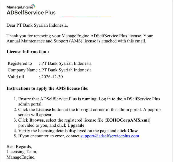We have received the certificate license from our local distributor and request for update the license. Can you guys help to update the license certificate need for compliance document. Because on the certifcate license only inform about the licence validity till. We need the start date and the end date for the license validity and can you guys inform me the SKU for the License.