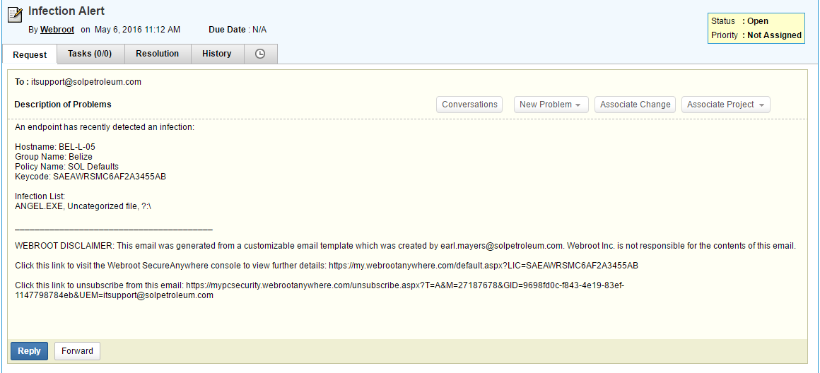 i. The email’s subject will say something like this: Automatic reply: Your request has been logged with Ticket Number