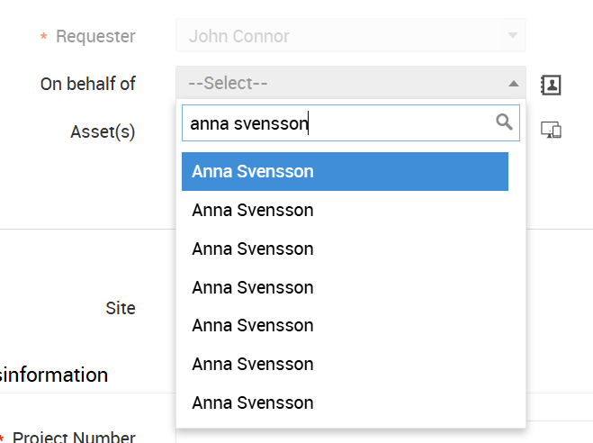 Hoovering over the names doesn't show their e-mail or departments. At least their departments should be listed here for the Requesters.