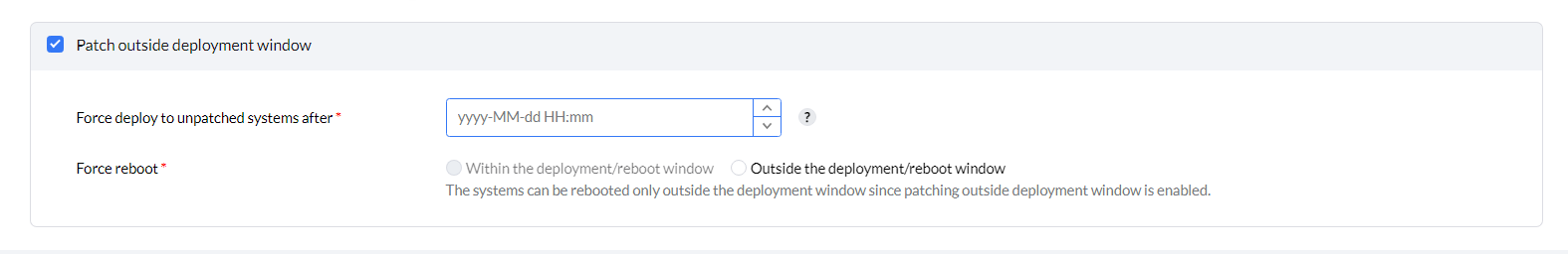 Introducing Patch Outside Deployment Window - an addition to Vulnerability Manager Plus' Automate Patch Deployment and Manual Deployment capabilities, that lets you seamlessly patch endpoints that have missed the deployment windows, anytime they come online.