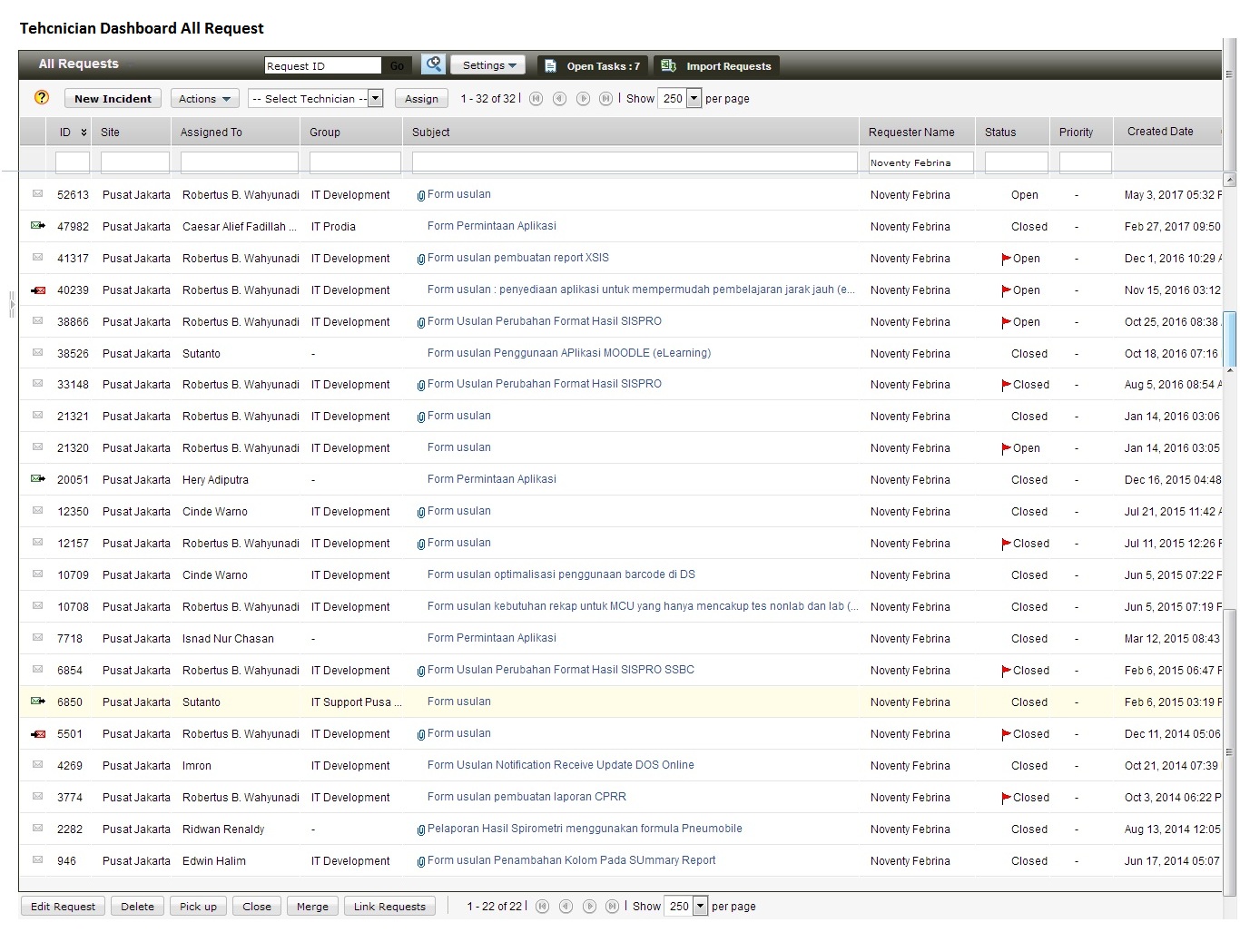 Where pending requests appear to the user (called Noventi Febrina) only 1 ticket.