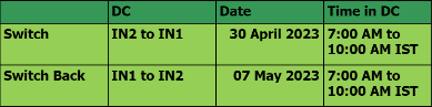 We have planned to conduct our yearly DR Drill for Zoho IN(India) Service on 30 Apr 2023 and 07 May 2023 to ensure our DR Readiness in IN Deployment. This will help us support our expanding server far more efficiently.