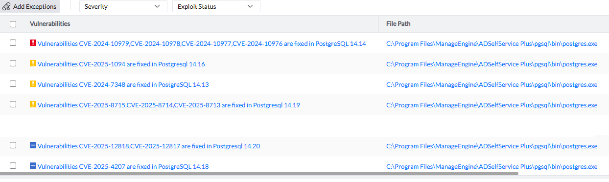 So, the Endpoint Central Vulnerability scanner is complaining about PostGres database components being multiple versions out of date. Could we get a update in the next patch or is there a way to manually update this?