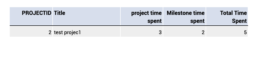 Query to get Project and milestone timespent in same query.