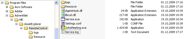 and the directory C:\Program Files\AdventNet\ME\AssetExplorer\RemoteControl contains more files (i.e. some dll's which are not present in my installation)
