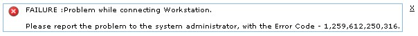 FAILURE :Problem while connecting Workstation. Please report the problem to the system administrator, with the Error Code - 1,259,612,250,316.