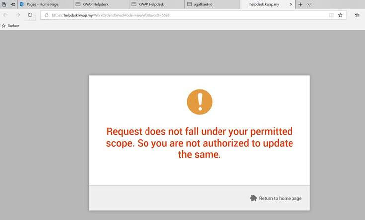 The technician have picked up, added 1st note and edited the status for the ticket. Then today the technician tried to change it to Resolve but can’t because the ticket is still unassigned even though the technician have picked up. After that the technician edit, choose her name and saved but suddenly she can’t see the ticket anymore.