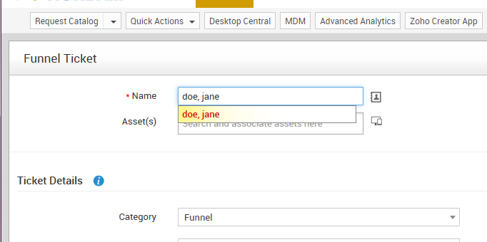 But, if you misspell a name or enter a name not in the requester list and submit the ticket, it creates a requester record for that user.