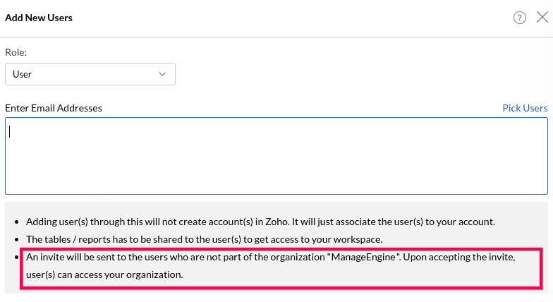 An invitation email will be sent when a new user is added or when a view is shared with a user who does not yet have access.