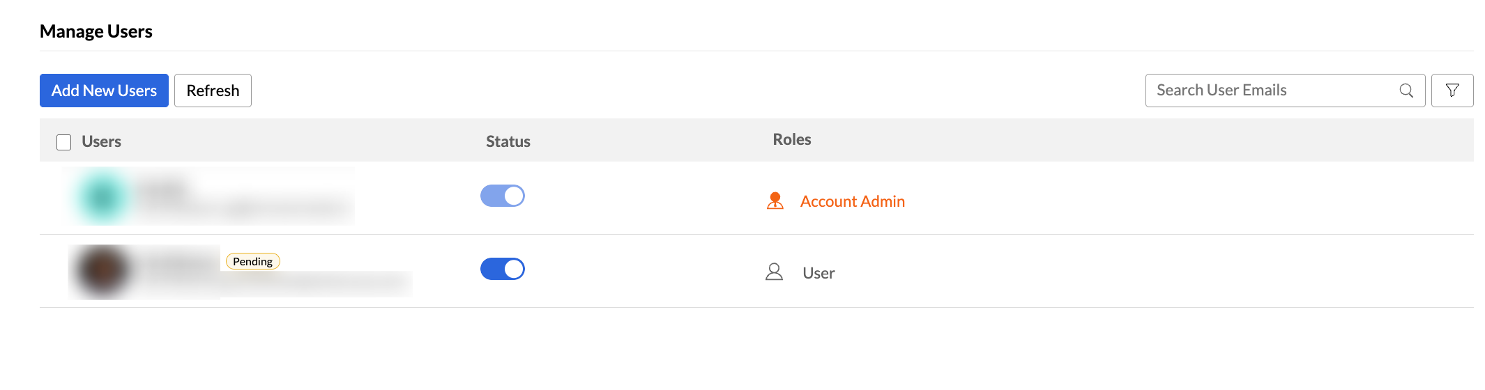 Users who haven’t accepted the invite will appear with a ‘Pending’ tag next to their name in the User Management section.