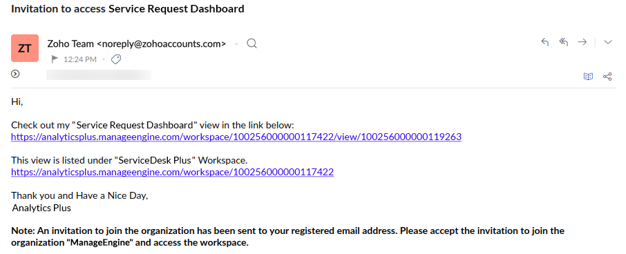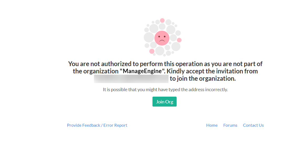 Prerequisite: The user should have a ManageEngine account. If not, they will be prompted to sign up to ManageEngine and accept then accept the invite.