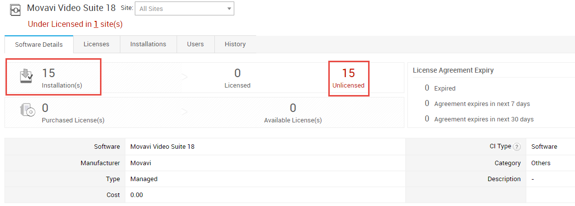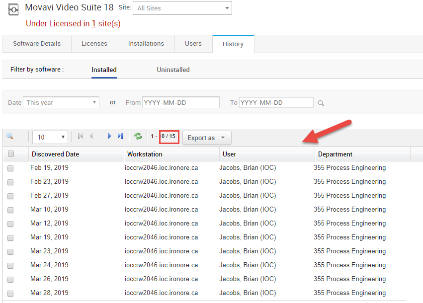 But, when we check the History, it shows that it was installed 15 times on same computer. Is there where it gets 15 installations. The software is no longer on that computer, so shouldn't it read 0 Installations for the software.