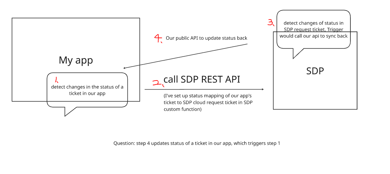 Because the sync is two-way, when SDP updates a ticket and triggers the sync, our app updates it back to SDP — causing an infinite loop.