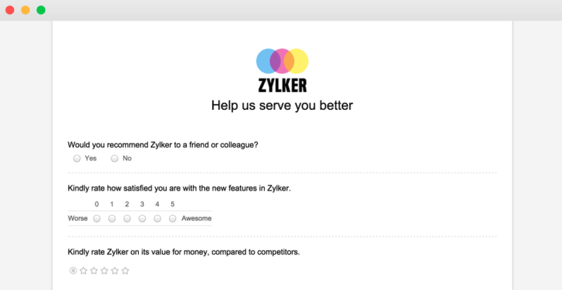 ManageEngine ServiceDesk Plus has it's own built-in survey option which allows for creating a series of feedback questions with graded user response and comments: