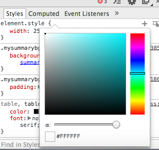 Now here's the really clever bit, simply click on the coloured square and change the colour instantly - lets go white (#FFFFFF):