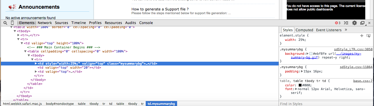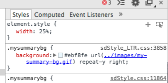 The interesting bit is the Style tab on the right where you'll see the HTML colour code for this background and the file where this is located, in this case 'sdStyle_LTR.css:
