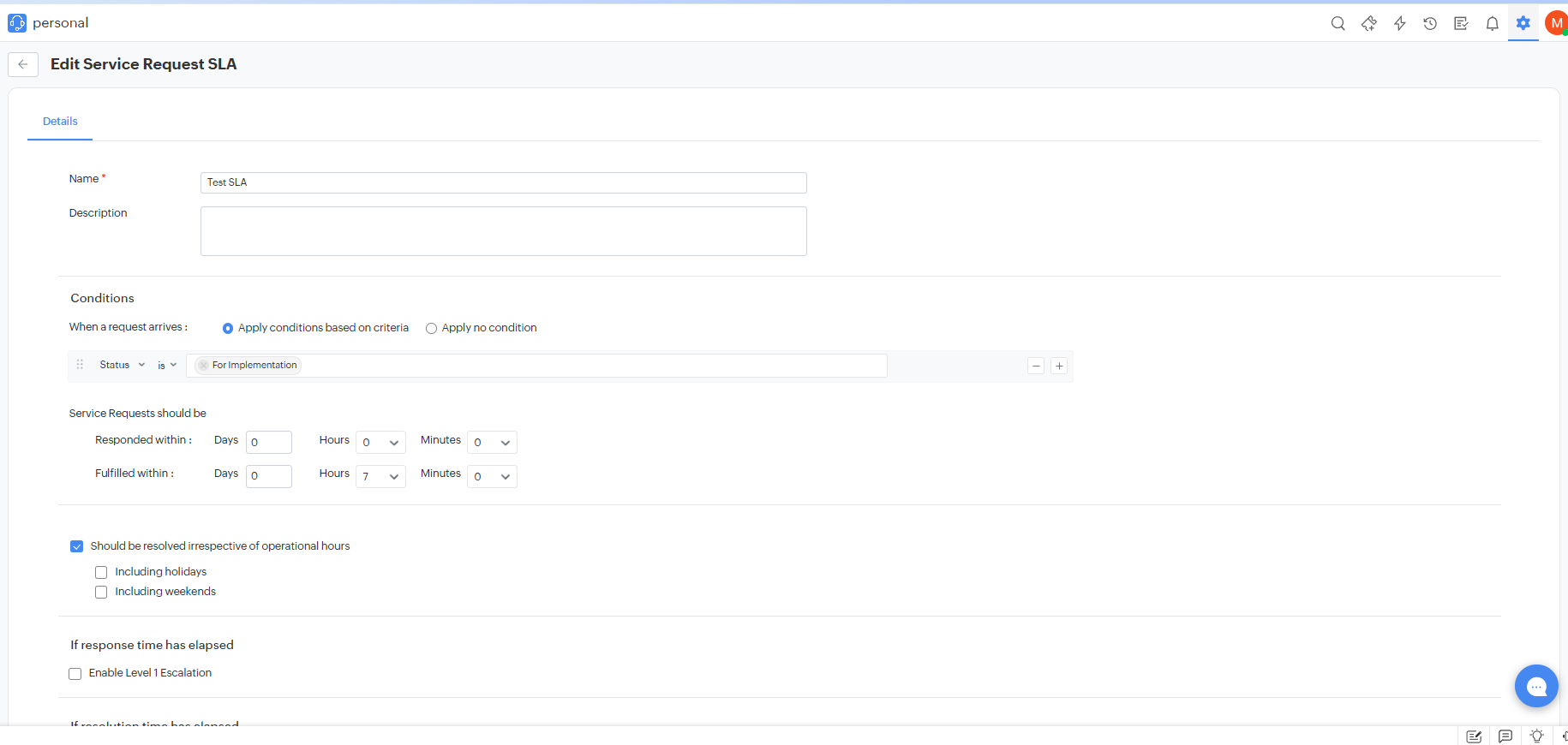 how can I create a SLA in SDP cloud that triggered when status is TODO and pause when status is not TODO, Resume SLA when status is TODO again and STOP SLA when ticket resolve