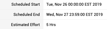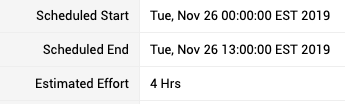 but when you Edit the same task and adjust the Effort the Scheduled End date adjust to fit the Estimated Effort within a work day (ex: 9am - 5pm):